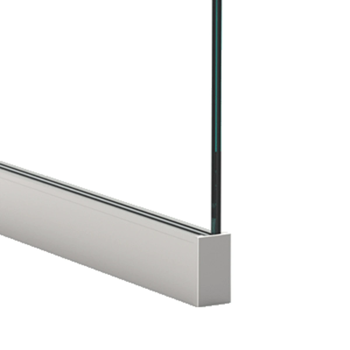 A slimline glass balustrade profile with the added benefit of one side fixing as standard.
