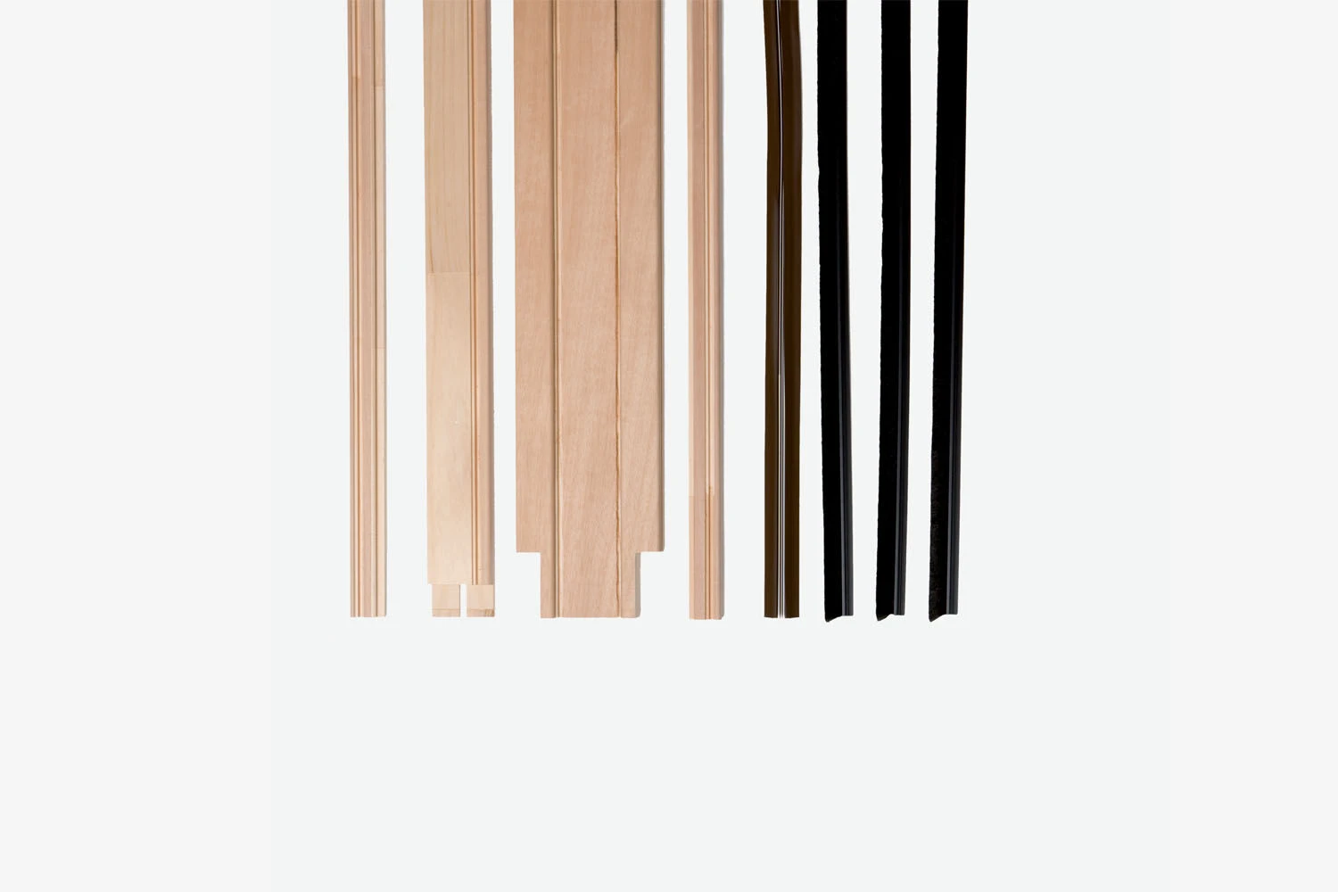 Doorjambs, ready to be lacquered or varnished, complete with brushes and seals. Suitable for Evokit.