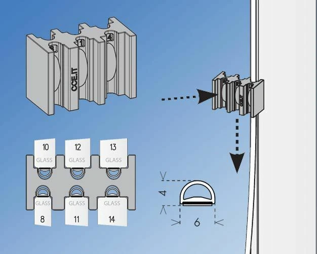 Glass bumper seal is a translucent bubble seal that fits via 3M adhesive to the edge of any glass size from 8mm – 14mm. It is ideal for use on frameless folding glass systems to act as a weather seal and to reduce sound penetration. It is also suitable for use on shower doors. Sold either per meter or in 12m rolls. A applicator tool is also available which accurately places the seal on the glass edge centreline with ease. Sold separately.