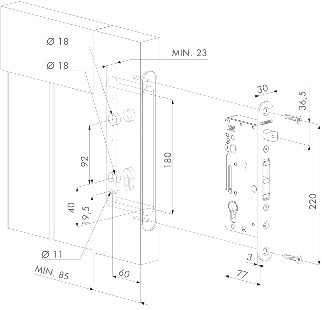 - Compatible with 54 mm, 60 mm and 80 mm Europrofile cylinder.