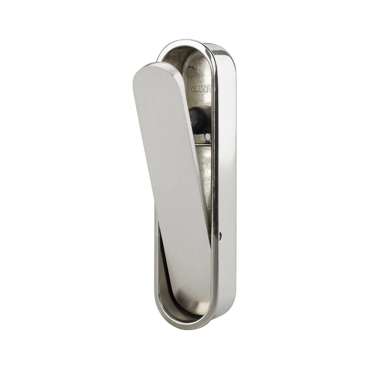 Made from Zinc Alloy with a Satin Nickel finish, this is a low cost, high quality Pocket Door Pull Handle. Sprung loaded so that once used the lever flicks back into the recess. Simple to fit as it can be easily glued into place.